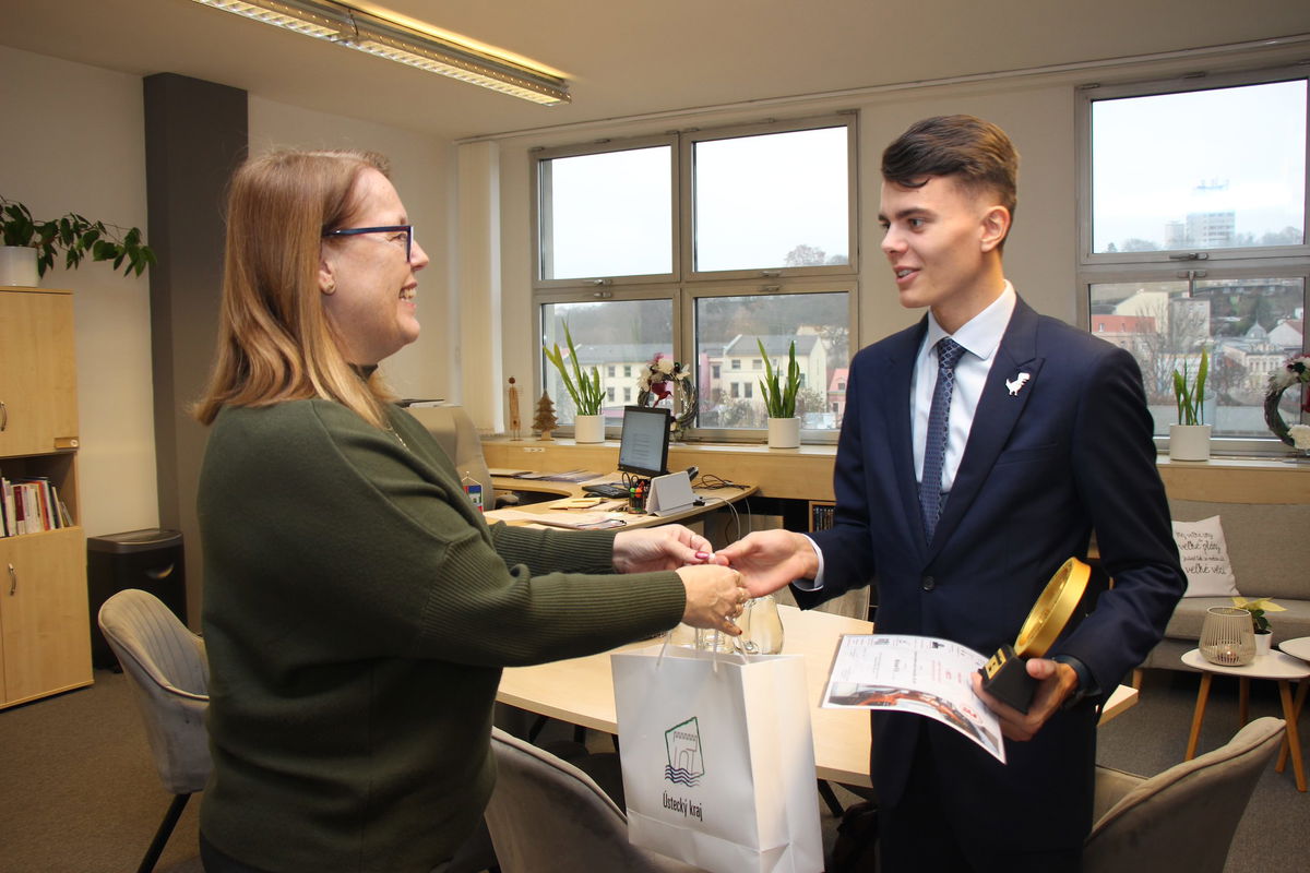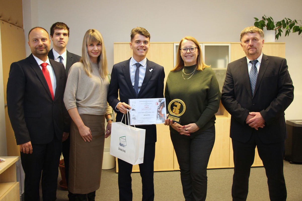 Na předchozí zprávu o mimořádném úspěchu našeho žáka Michaela Kříže navazujeme s velkou radostí. Informaci o jeho ocenění převzal a dále rozšířil také Ústecký kraj.